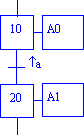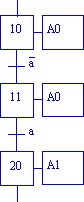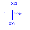 A menudo interesará imponer como condición, para una receptividad o una acción, el hecho de que una etapa esté activada o desactivada. Para referirnos a una etapa lo haremos con la letra X. Así en la figura la receptividad será cierta mientras la etapa 20 esté activa y sólo se realizará la acción cuando estén activas simultáneamente las etapas 3 y 12.