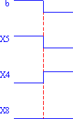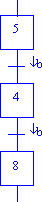 En el ejemplo siguiente tenemos un GRAFCET en el que la transición entre las etapas 5 y 4 está condicionada por el flanco de bajada de la variable b, exactamente igual que la transición entre las etapas 4 y 8; en el primer gráfico llega sólo un flanco que hace pasar de la etapa 5 a la 4 pero como cuando llega el flanco la etapa 4 no está activa, la transición siguiente no es válida y no puede pasar a la etapa 8 hasta que llegue otro flanco. En cambio en el segundo gráfico llegan dos flancos consecutivos, lo que permite pasar primero a la etapa 4 y después a la 8.