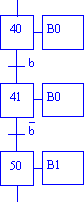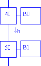 En este caso la receptividad es cierta en el instante en el que la variable b pasa de activada a desactivada. Si la transición es válida cuando b pasa de activada a desactivada, la transición se franqueará; en el caso de que la transición se haga válida después del cambio de estado de b, no será franqueada.