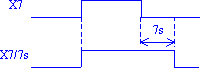 La segunda notación (fijada por la norma IEC-848) establece que la condición dependiente del tiempo consta de un primer valor (que llamamos t1) seguido de una barra, después hay una variable cualquiera, una nueva barra y el segundo valor de tiempo a considerar (que llamamos t2). Esta condición pasa de falsa a cierta cuando el tiempo transcurrido desde la última activación de la variable indicada supera el tiempo t1 y pasa de cierta a falsa cuando ha transcurrido un tiempo t2 desde la última desactivación de la variable considerada. Por ejemplo la condición 5s/X7/7s pasará a ser cierta cuando hayan pasado cinco segundos desde la última activación de la etapa 7 y volverá a falsa cuando hayan pasado siete segundos de la desactivación de la etapa 7.